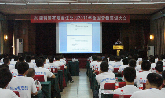 8月5日,公司董事長、總經理廖昶、副總經理賀恒輝、郭棟、吳生文親臨會場與市場營銷骨干及內控系統各部門代表共同召開2011上半年營銷工作會議。參會人員認真地聽取了各營銷大區代表對四特營銷新模式的分析探討以及2011上半年營銷工作情況分析。