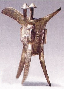 飲酒器和禮器。流行于夏商周時期,作用相當于酒杯。圓腹,也有個別方腹,一側的口部前端有流(即倒酒的流槽),后部有尖狀尾,流與口之間有立柱,腹部一旁有把手,下有三個錐狀長足。夏代爵胎體輕薄,制作粗糙;橢圓形器身,流長而狹,短尾,流口間多不設柱,平底,一般沒有銘文和花紋,偶見有連珠紋者。商早期流與口之間開始出現短柱,下腹部中空;有的透鏤有圓孔,以便溫酒加火時透風。商中期后,爵演變為圓身,圓底,流口增高,多設一柱或二柱,柱身加長并向后移,三足粗實且棱角分明,器身加厚。商晚期至西周早期爵體厚重,制作精美;爵身飾有饕餮、云雷、蕉葉等精美的紋飾,上端和柱上也飾有動物形象有少數無柱而帶蓋的爵,蓋鑄成獸首形。西周前期還有一種器表鑄有扉棱的爵,往往以云雷紋作地,飾有兩層或三層花紋,紋飾繁而精美。西周后期,爵逐漸消失。